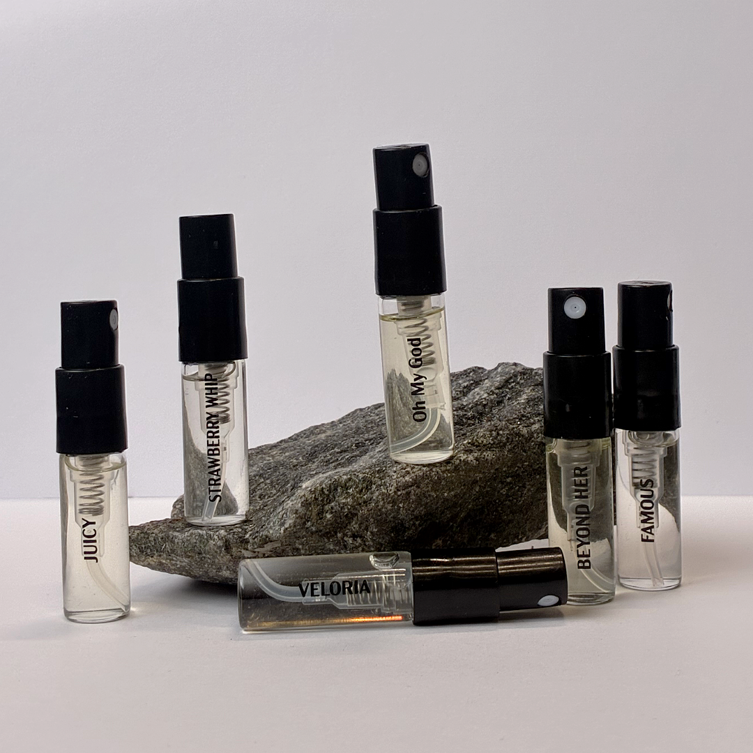 Alla våra testparfymer är 2 ml med sprayfunktion, framtagna med 25 % premiumolja för en rik och långvarig doft som håller i 7–12 timmar.